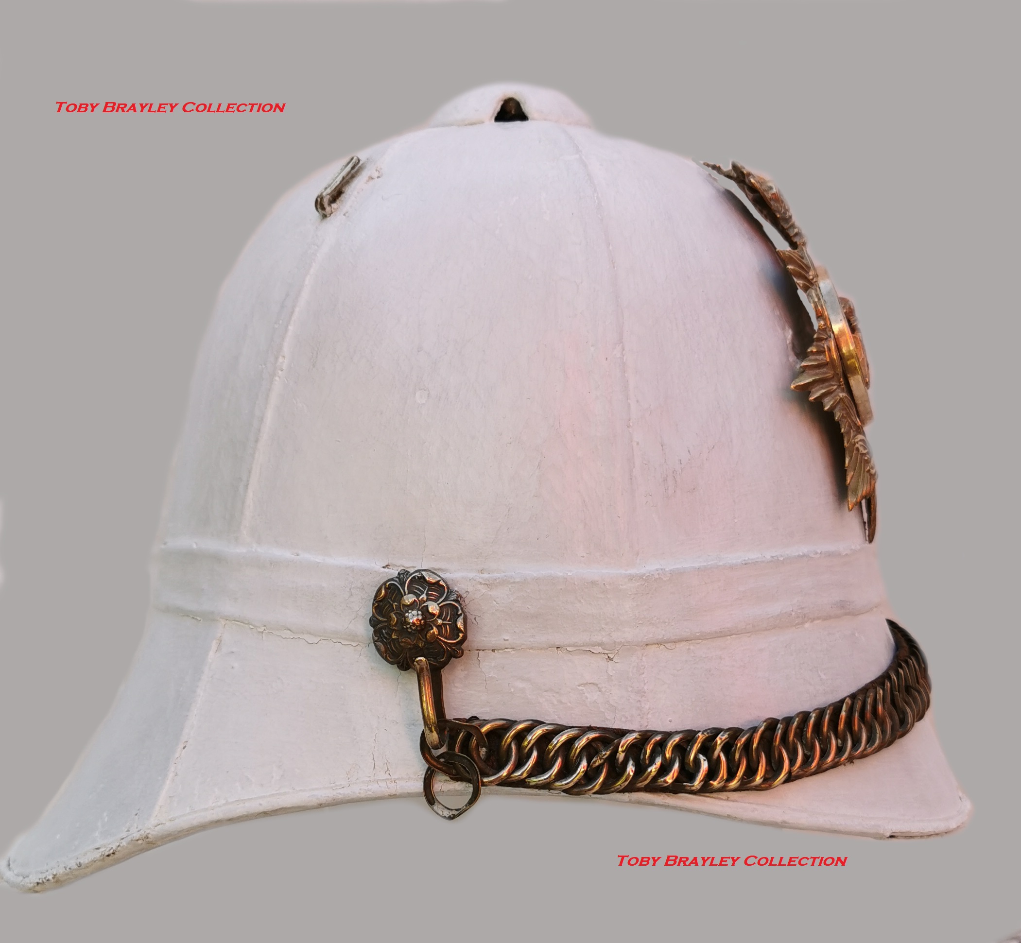 The fact it was issued in Cyprus probably explains the form of “Mediterranean Order” of no Puggaree (pre 1884) and the “Home Service Helmet” furniture. The cork spacing between the headband and the shell is also an indicator of its being “Mediterranean Order”.