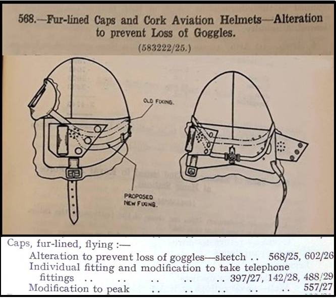 - ‘Fur-Lined Caps and Cork Aviation Helmets—Alteration to prevent Loss of Goggles.’ Air Ministry Weekly Orders 583222/1925. 568. (British Library)