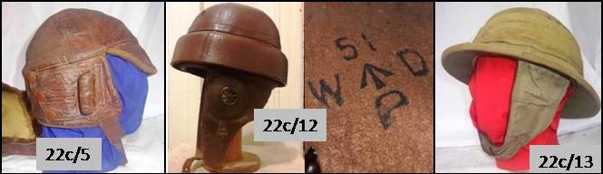 22C/5 ‘Caps, Fur-Lined’ were listed until the late 1920s when replaced by the ‘1930 Pattern’ 22C/51; 22C/13 ‘Helmets, Cork Aviation’ were listed until early WWII, when it actually picked up a further series of 22C numbers 274-284 denoting the eleven sizes then available, but it was soon to be replaced by the Type-D Tropical Helmet in 1942, 22C/969-972.