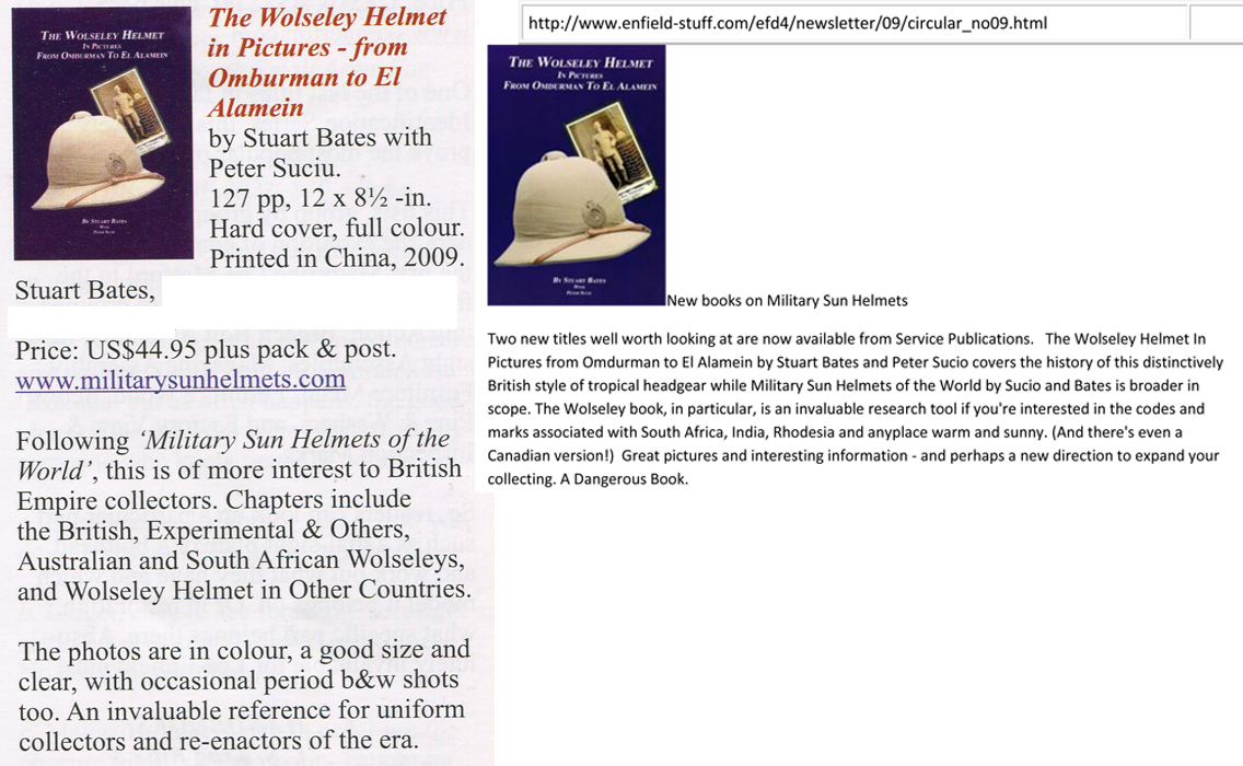 Another review found here – https://hatchfive.wordpress.com/2015/07/29/the-wolseley-helmet-in-pictures-from-omdurman-to-el-alamein-book-review/comment-page-1/#comment-757.
