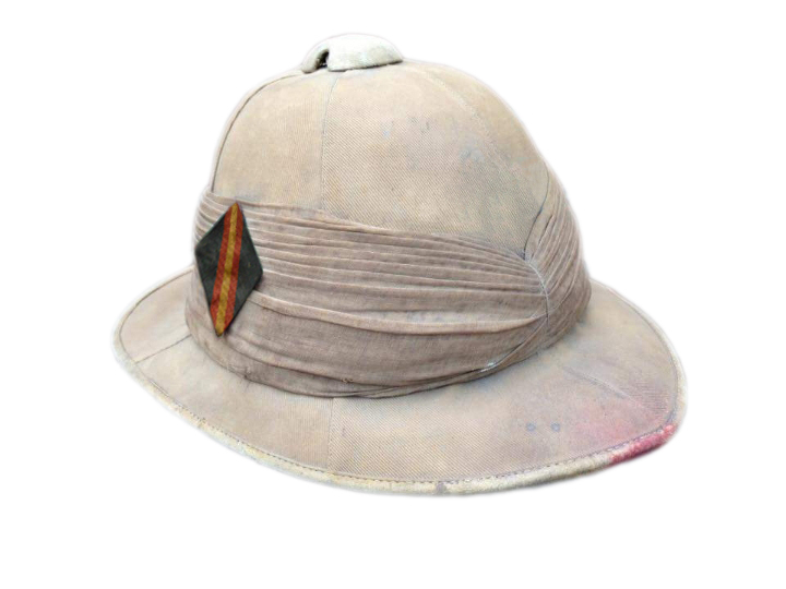 Some of the weird and wonderful shapes of helmet flashes often encountered on Foreign Service Helmets and Slouch Hats.